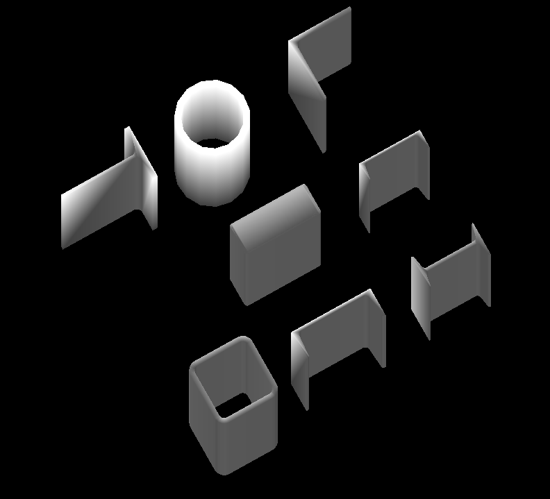 - Używanie Facet Modelera do rysowania typów 3D, takich jak pudełka, stożki, cylindry, piramidy, kule i torusy.